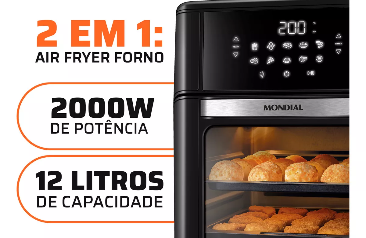 🔥 Oferta Especial: Fritadeira Air Fryer Oven Mondial AFON-12L-FB 2 em 1 – 2000W, 12L 🔥